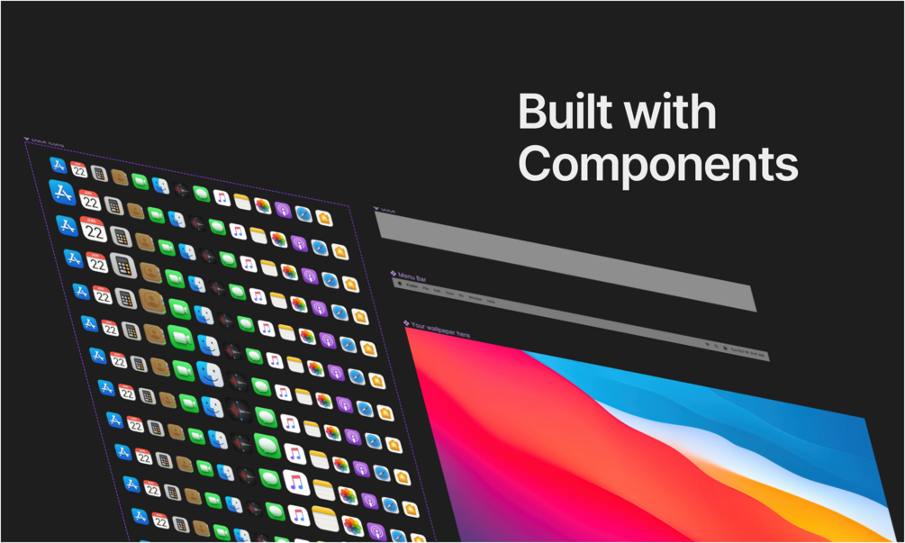 I don't know what you want to do with this product but it is impressive. Everything is ready, components, 14+ variants, 200+ prototyping wires and the one & only, our zoom animation that appears on hovering over any app icon in the dock.